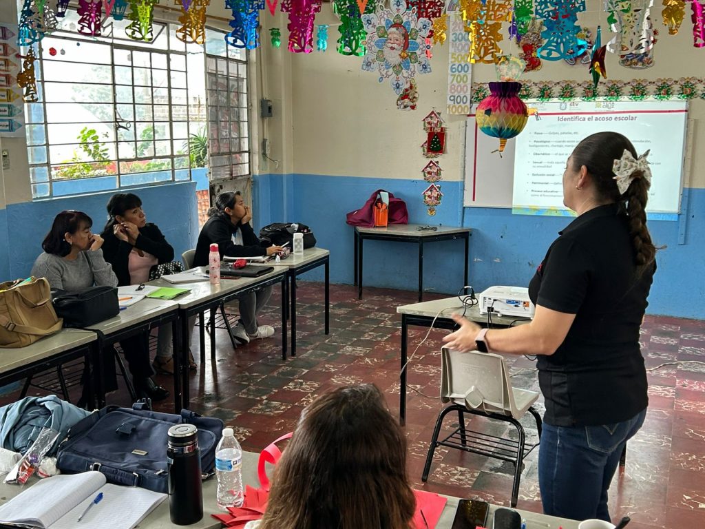 Durante la sesión, se expusieron lineamientos para la prevención, detección y canalización de situaciones que vulneren los derechos de niñas, niños y adolescentes, así como los mecanismos institucionales para actuar de manera adecuada y oportuna ante posibles casos de violencia dentro del entorno escolar.