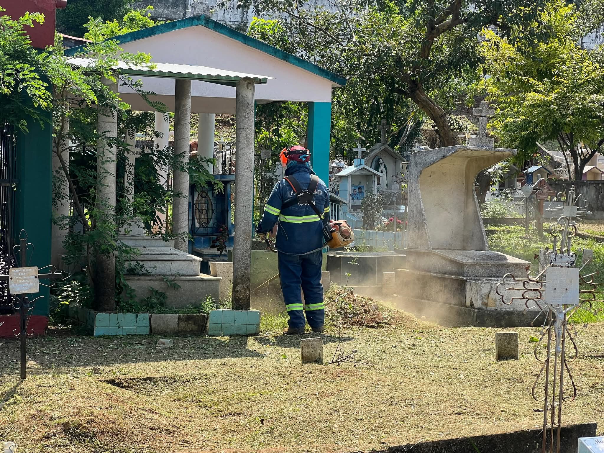 El área de Parques y Jardines realizó trabajos de podas sanitarias de árboles y palmeras en ambos cementerios; además se comenzó con la colocación de elementos decorativos alusivos a las festividades.