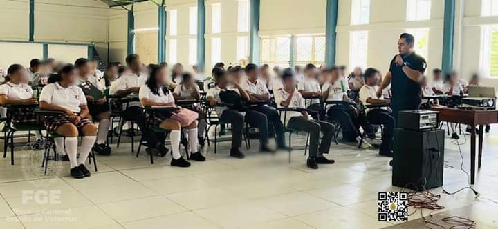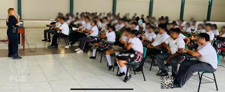 Yecuatla, Ver., 23 de junio 2023.- La Unidad Especializada en Combate al Secuestro a través del Departamento de Negociación llevó a cabo una plática preventiva relacionada al engaño telefónico y extorsión en sus modalidades de sexting, grooming, morphing y ciberbullying las cuales fueron dirigidas a los alumnos del Telebachillerato Yecuatla.
