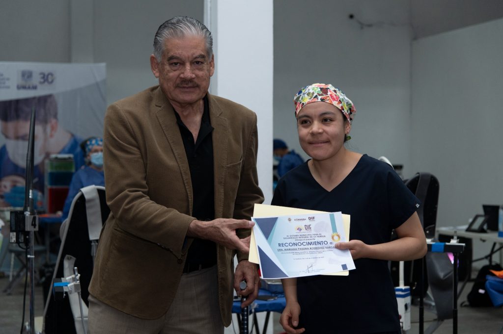 Este viernes en las instalaciones del DIF se llevó a cabo la clausura de los trabajos por parte del director de Desarrollo Social, Daniel Hernández del Ángel en representación del alcalde Juan Martínez Flores, María Elena Yunes Choperena directora del DIF, Néstor Mejía Becerril, coordinador médico del DIF y de Karla Mayela Avelar Juárez representante de la Fundación UNAM y especialista en patología oral.
