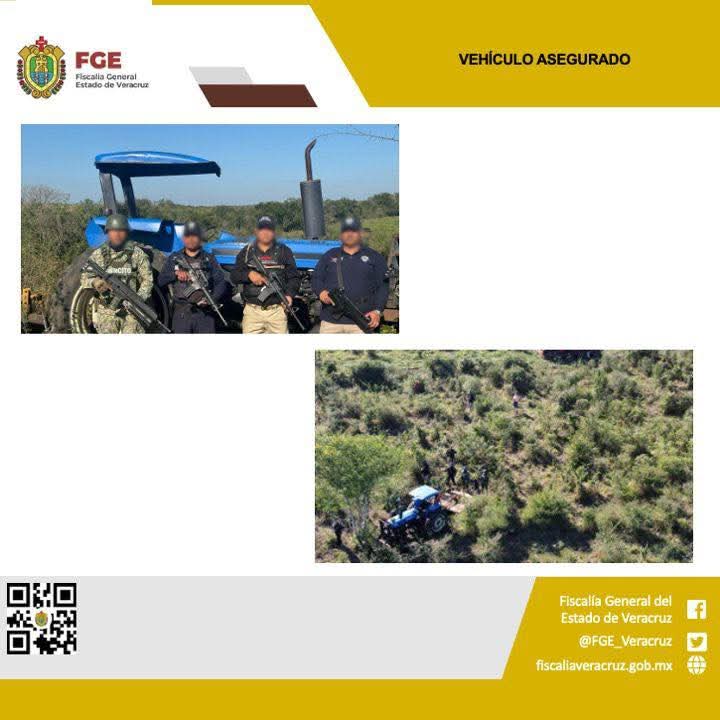 En el lugar se procedió a la busqueda, localización y aseguramiento del objeto de cateo, el cual es un vehículo automotor (tractor) marca New Holland, así como un utensilio de labranza.