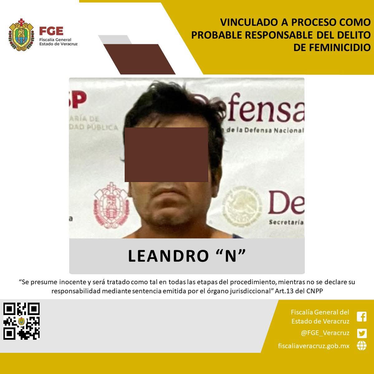 San Andrés Tuxtla, Ver., 27 de agosto 2025.- La Fiscalía Coordinadora Especializada en Delitos contra las Mujeres, Feminicidio, Familia y Trata de Personas obtuvo vinculación a proceso en contra de Leandro “N” como probable responsable del delito de feminicidio, cometido en agravio de la víctima S.C.M.