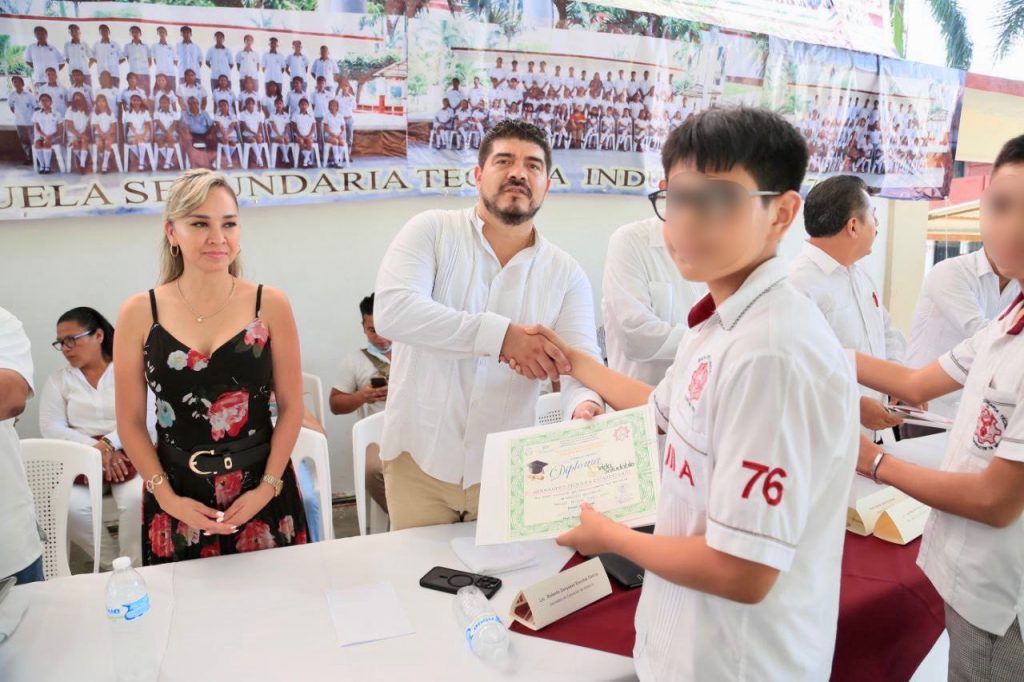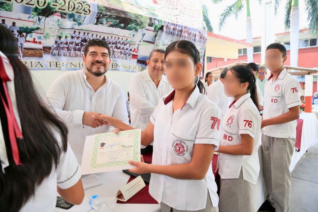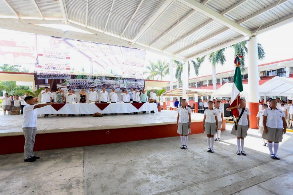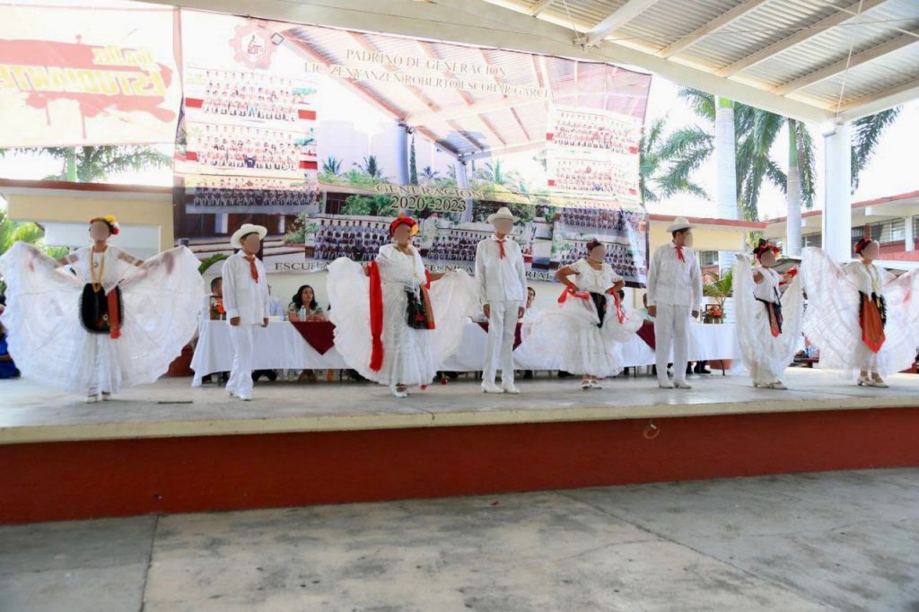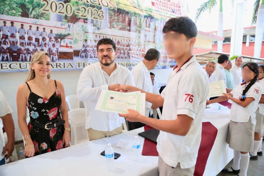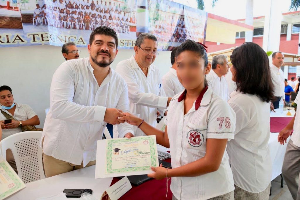 Como padre, dijo, sé que este es un momento muy significativo, al ver a las y los hijos subir un peldaño más para lograr sus objetivos, por lo cual reconoció el esfuerzo y trabajo de las madres y padres de familia presentes, porque hoy tienen el resultado de todo ello, asimismo, al personal docente por ser parte fundamental en la formación del alumnado.