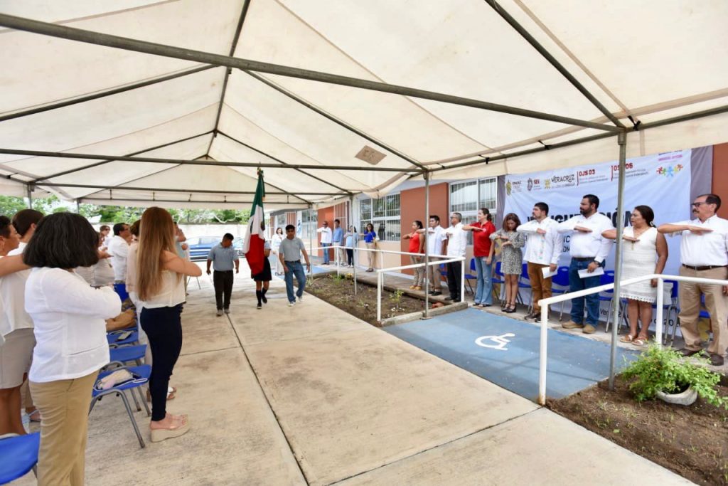 Estuvo presente el director del Instituto de Espacios Educativos del Estado de Veracruz (IEEV), Ricardo García Jiménez; la directora de Educación Especial, María de los Angeles Durand Martínez, y la delegada regional de la SEV, Diana Santiago Huesca.