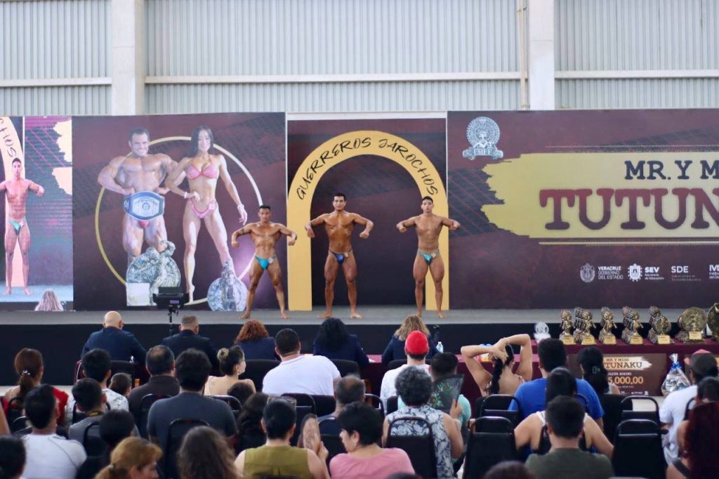 Boca del Río, Ver., 19 de junio de 2023.- Por segundo año consecutivo se llevó a cabo el certamen de fisicoconstructivismo y fitness Mr. y Miss Tutunaku Guerreros Jarochos, en la Arena Veracruz, dentro del Complejo Deportivo Leyes de Reforma, en el que resultaron ganadores absolutos de Miss Bikini, Itzel Reyes; de Miss Bikini Wellness, Paola Michelle Merchant (ambas de Orizaba), y ganador absoluto de clasificados de Físico Varonil, Roberto Medina de Veracruz.
