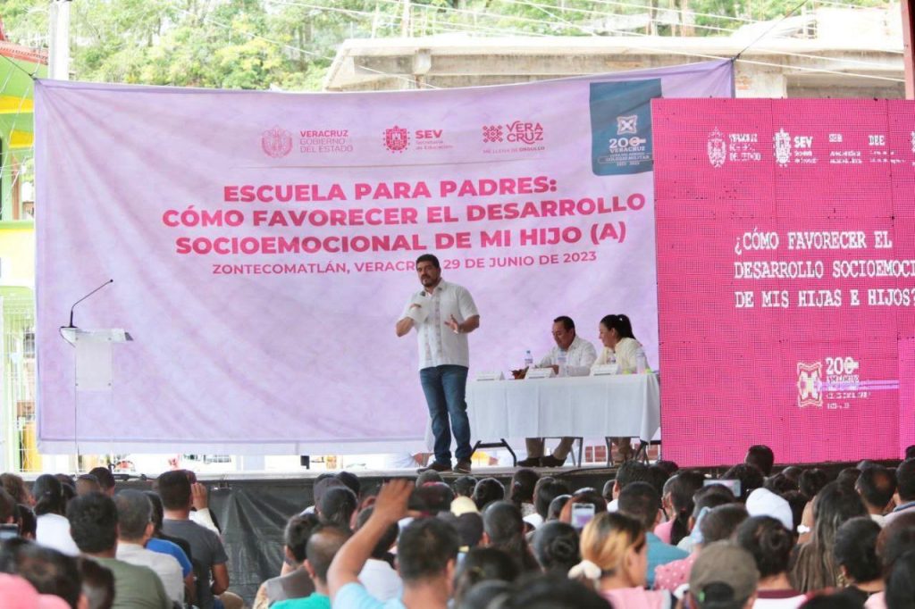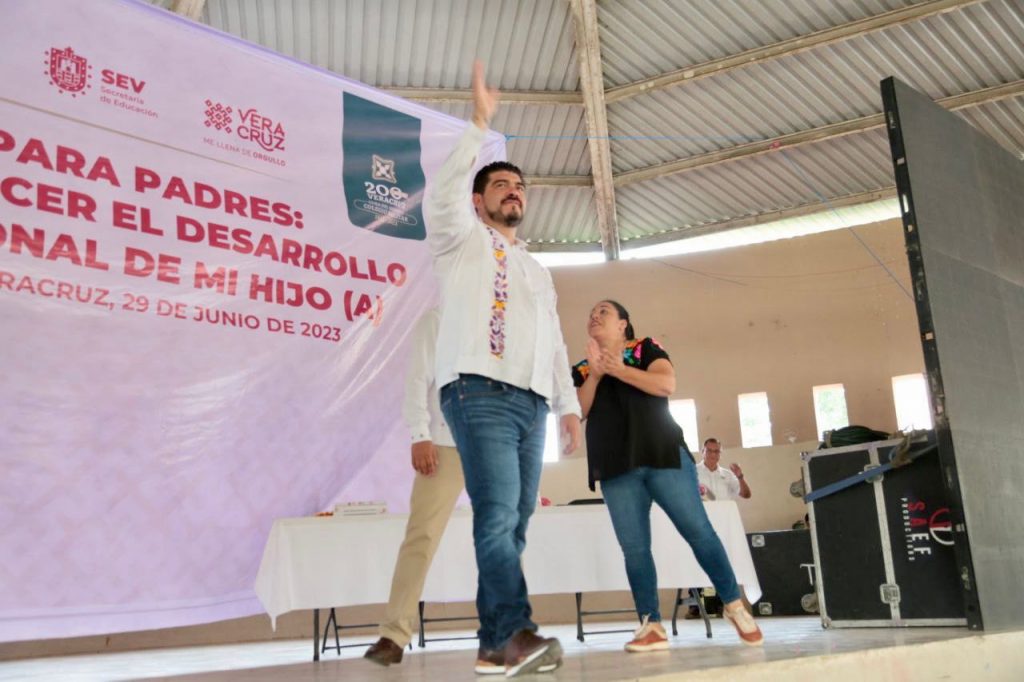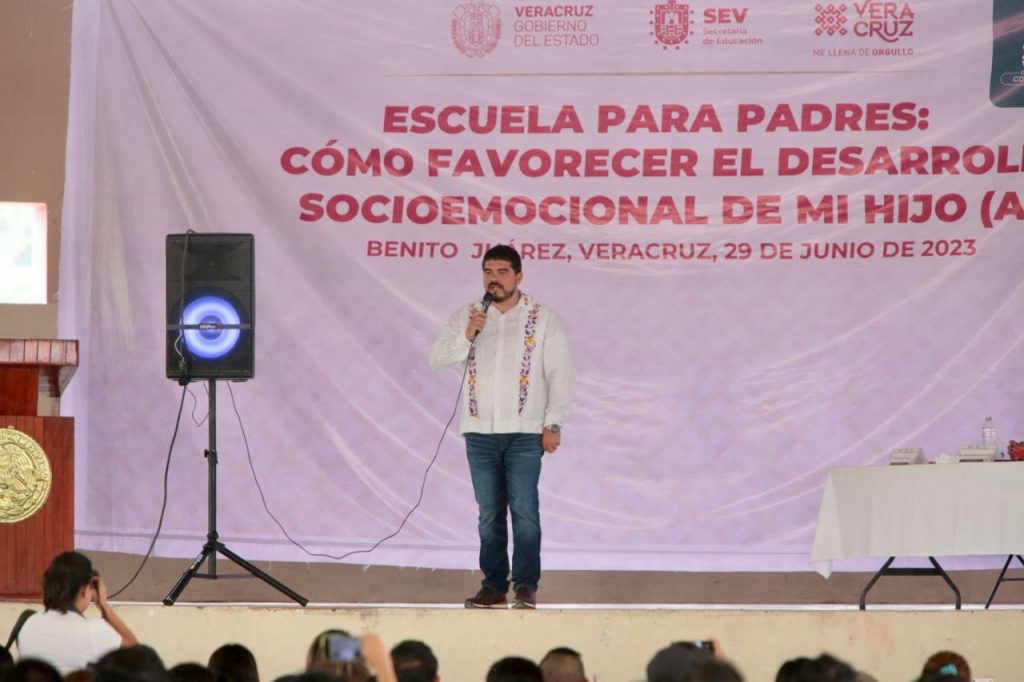 Benito Juárez, Ver., 29 de junio de 2023.- Con la asistencia de madres y padres de familia, así como docentes y directivos, el secretario de Educación, Zenyazen Escobar García, encabezó la jornada de Escuela para Padres ¿Cómo favorecer el desarrollo socioemocional de mi hija (o)?, que este día se llevó a cabo en los municipios de Zontecomatlán de López y Fuentes y Benito Juárez.